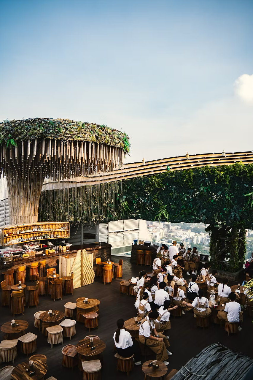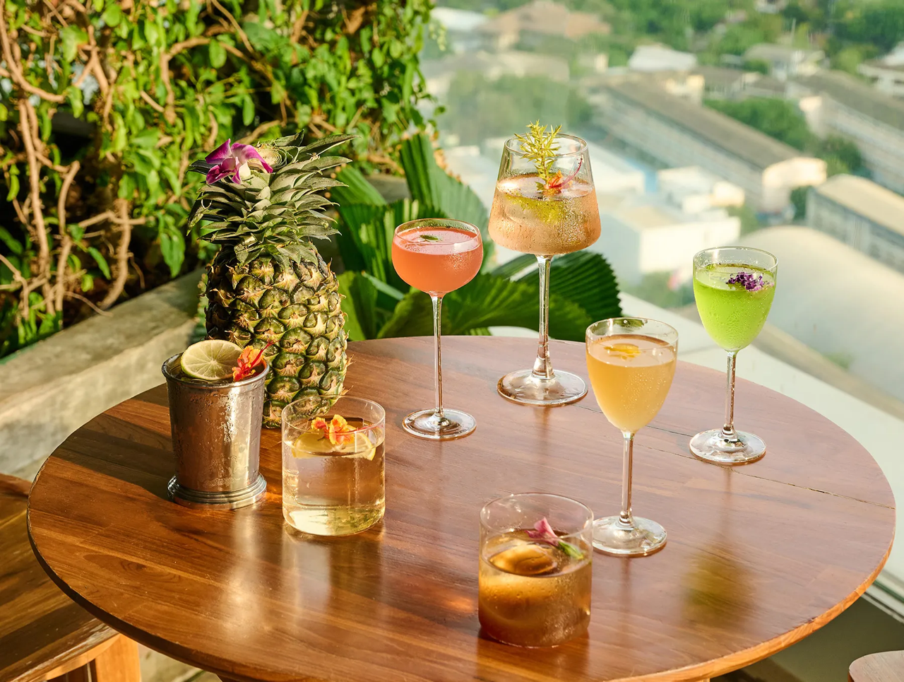 A popular Bangkok bar with a tropical “urban jungle” atmosphere, panoramic city views, and quality cocktails. It blends sunset relaxation with parties set to house and Afro beats.