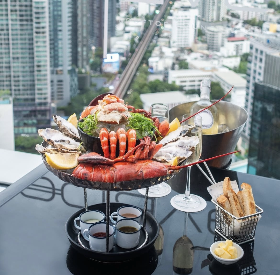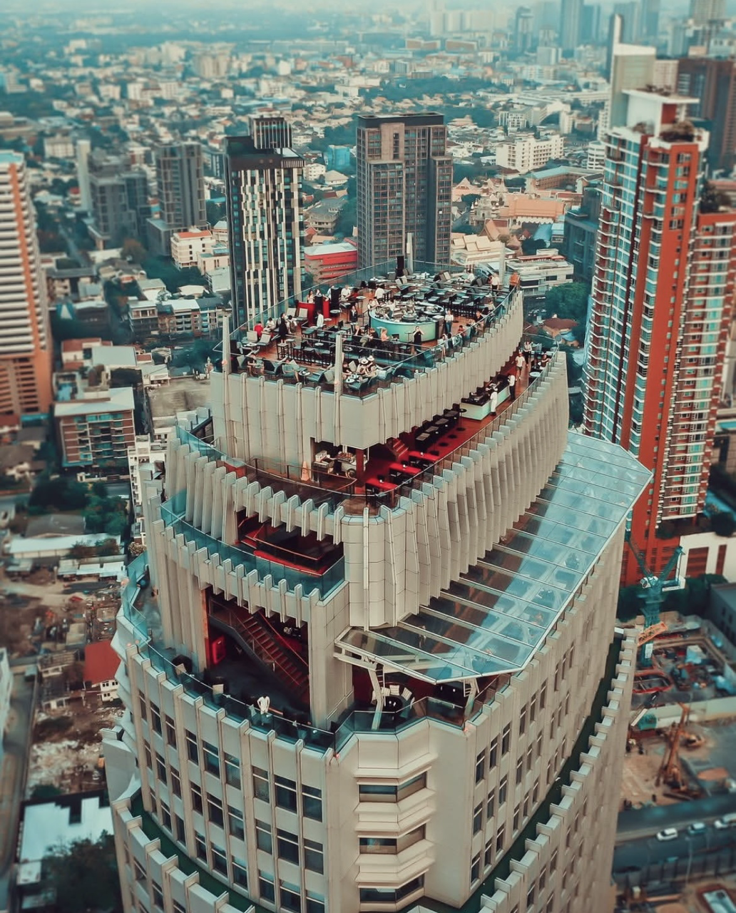 A trendy rooftop bar on the 45th–49th floors of Marriott Sukhumvit, offering 360° views of Bangkok, live music, and cocktails—perfect for sunsets and stylish parties.