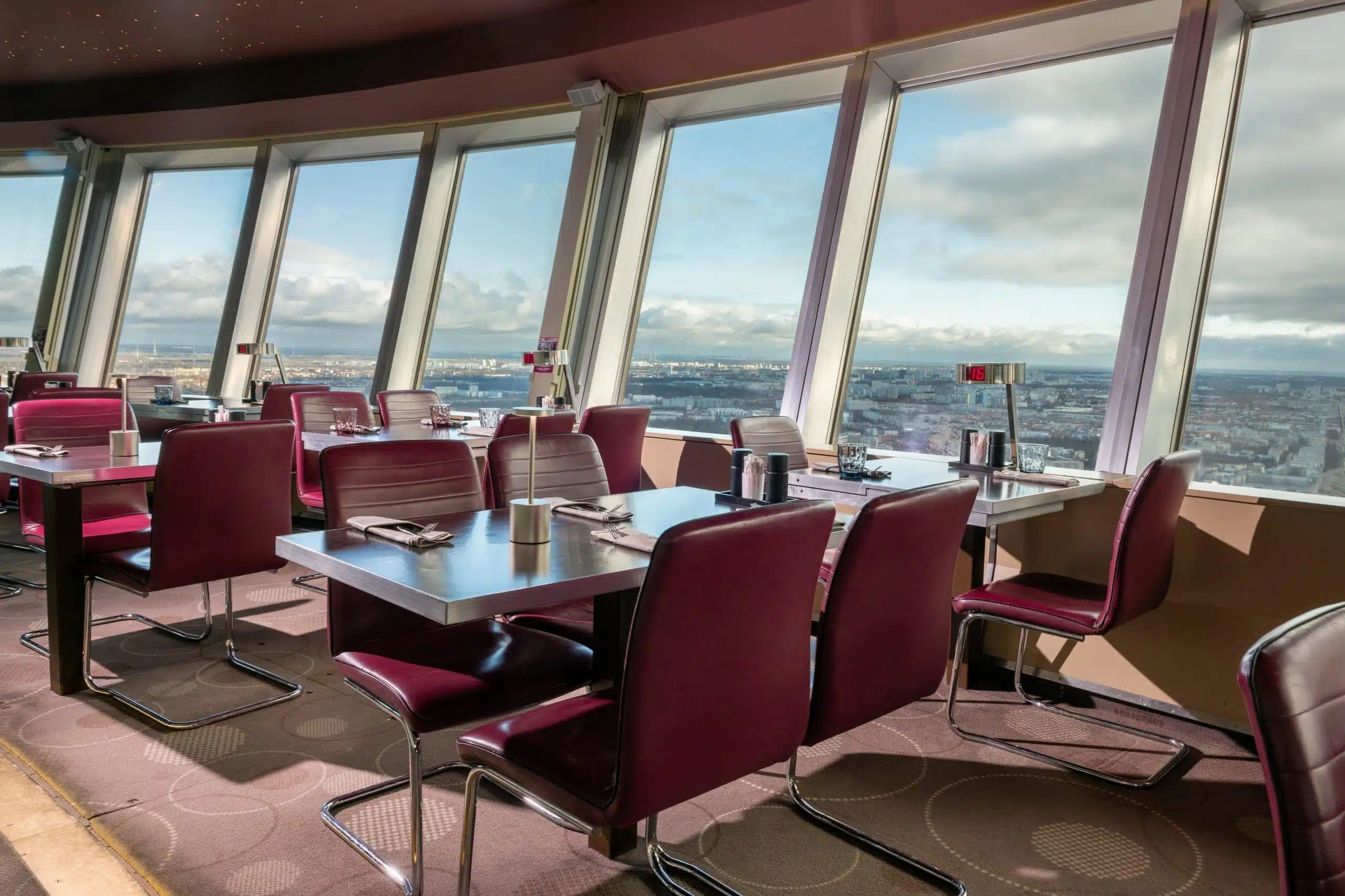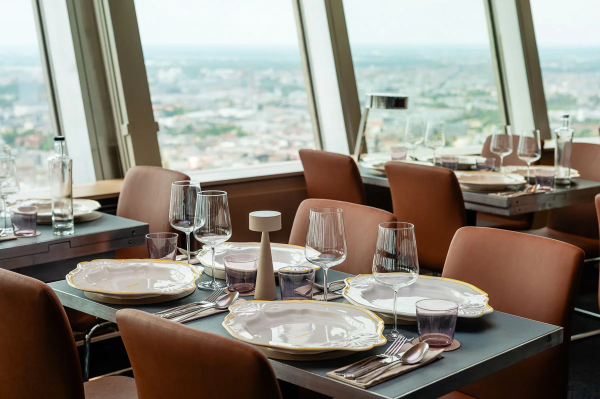 A newly renovated revolving restaurant at a height of 207 meters in the Berlin TV Tower (Fernsehturm), where star chef Tim Raue presents Berlin cuisine with a modern twist.