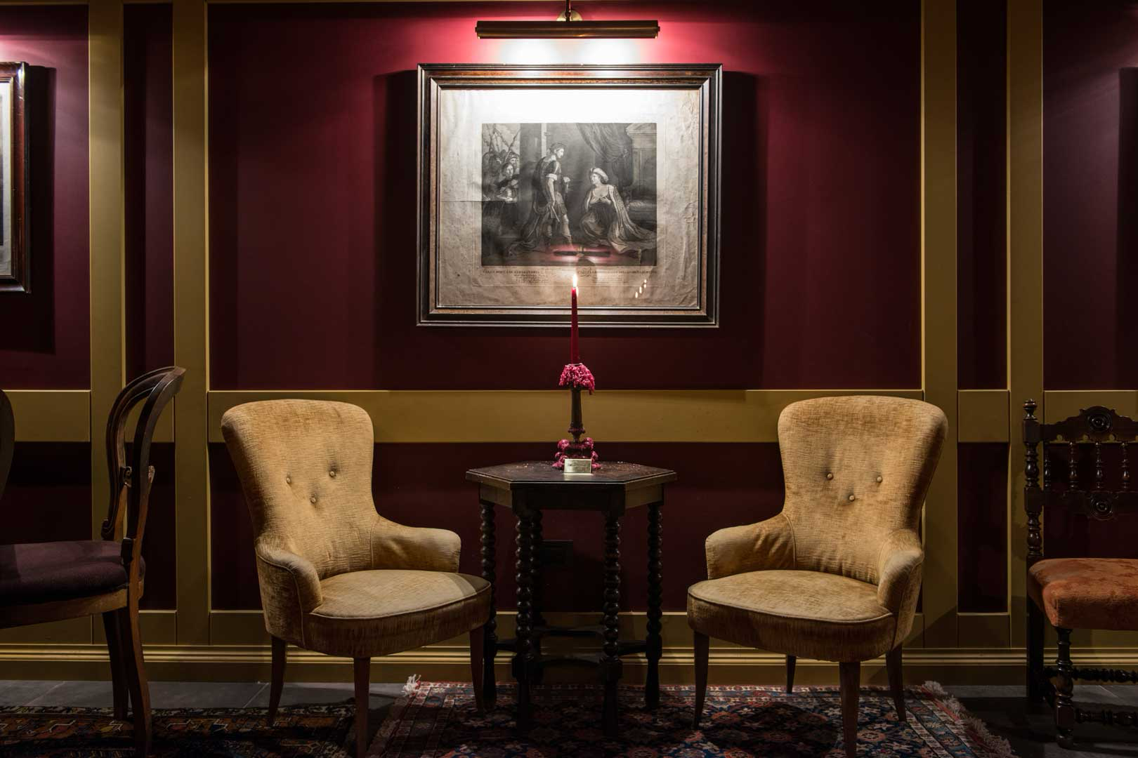 An iconic hidden speakeasy cocktail bar in Florence, the first of its kind in the city, Rasputin Florence blends a Prohibition-era atmosphere with Italian charm — featuring a secret entrance, dim lighting, red walls, velvet details, and candlelight.