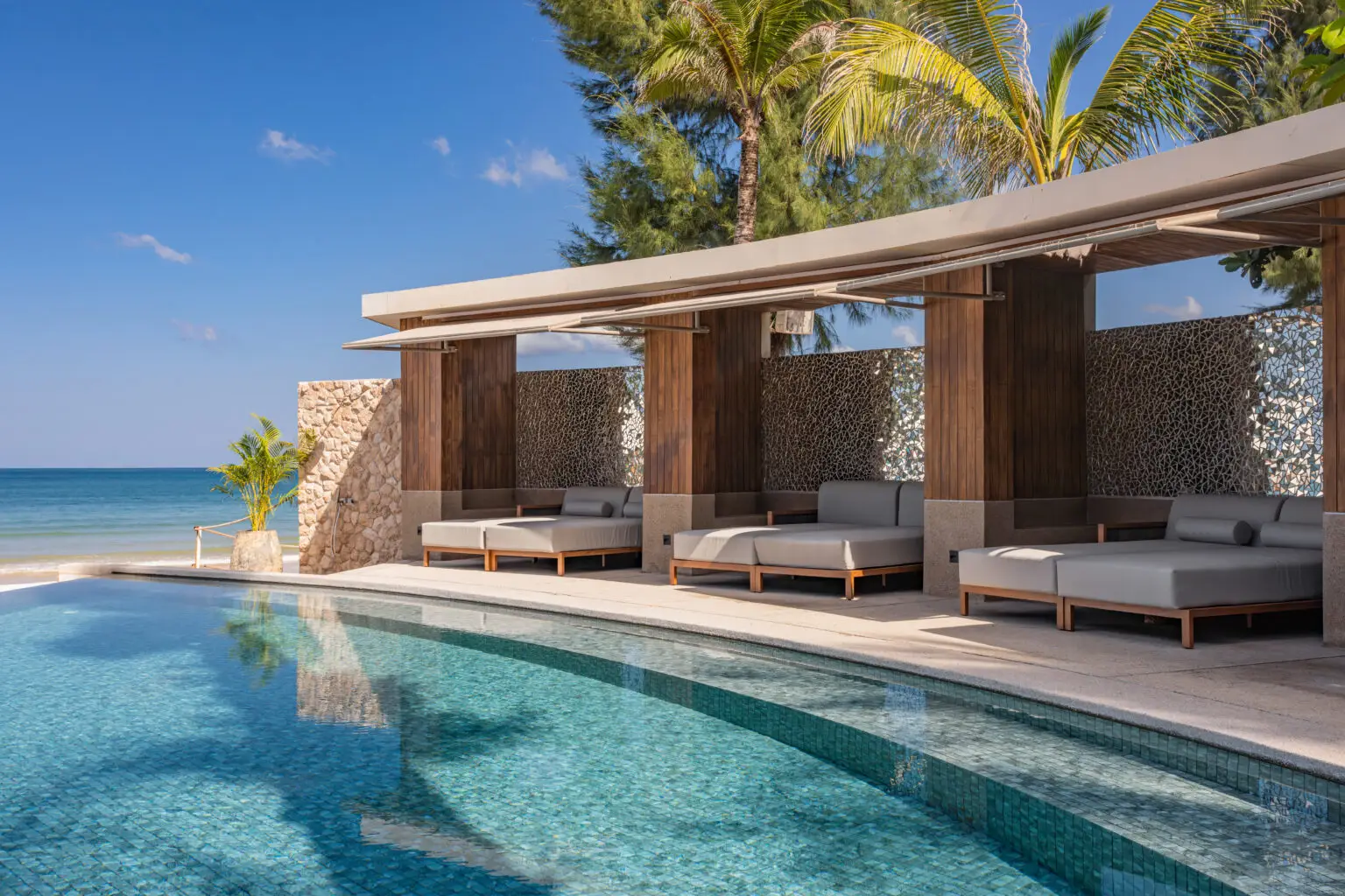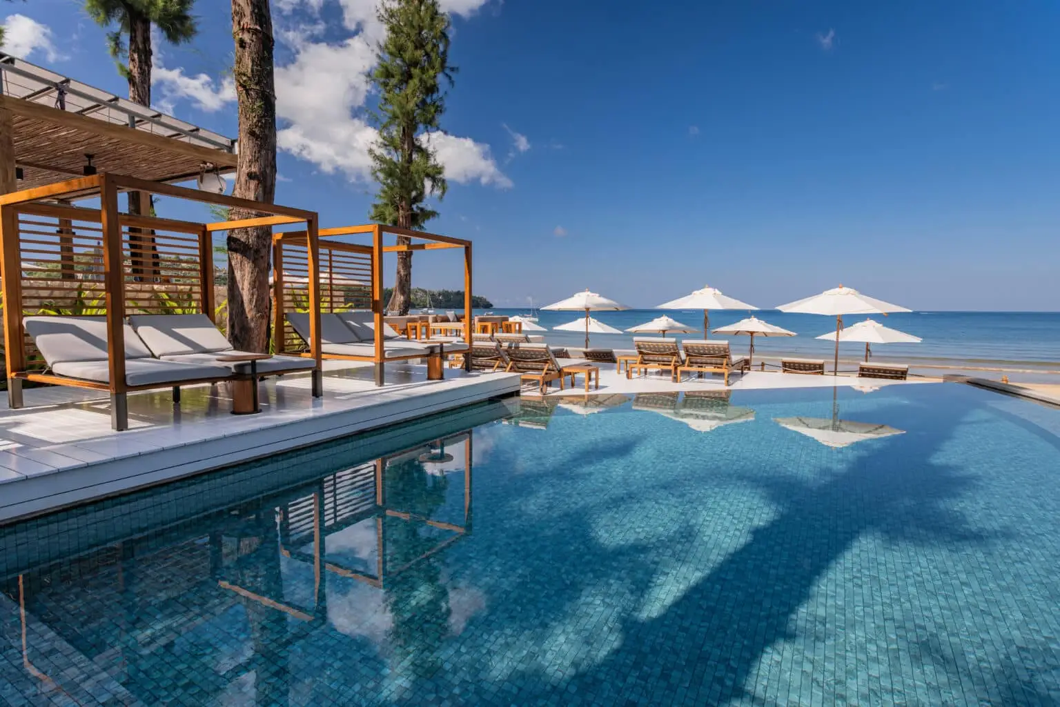 A stylish beach club on Bang Tao Beach, Carpe Diem Beach Club Phuket combines relaxed daytime lounging by an infinity pool with evening parties and live music.