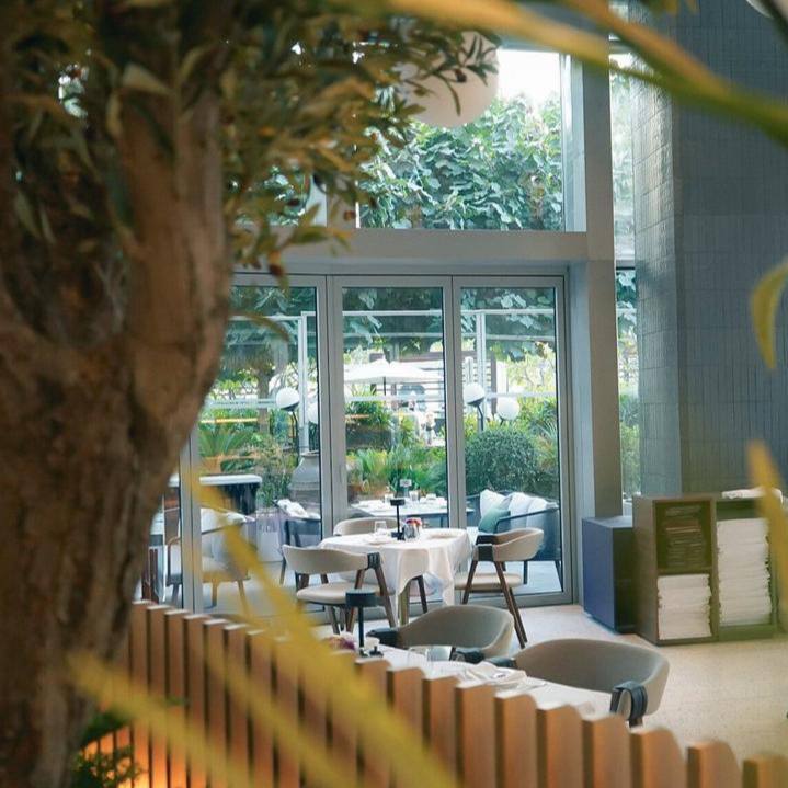 Современный ресторан турецко-средиземноморской кухни с открытой кухней, коктейль-баром и террасой с видом на Бурдж-Халифа.