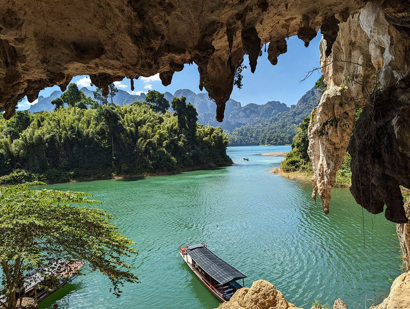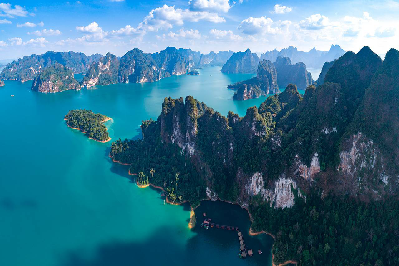 Искусственное озеро на юге Таиланда, в районе национального парка Као Сок, известное изумрудной водой, известняковыми скалами и плавучими бунгало.