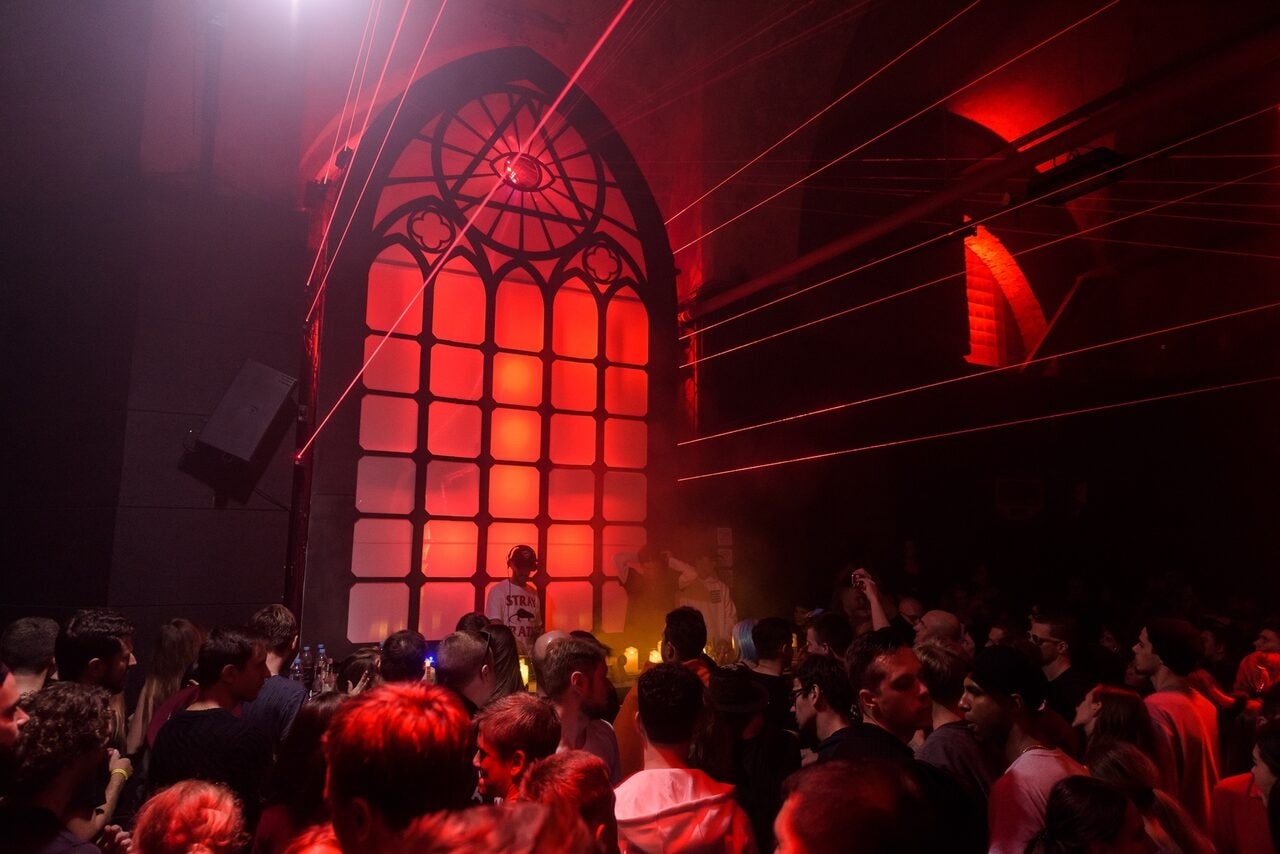 A club space in a historic building of the Arsenal factory, a center of the underground electronic scene.