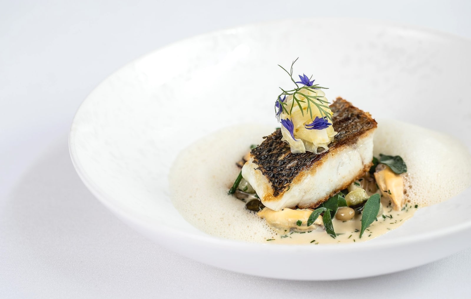 An elegant restaurant with a modern minimalist interior. The menu changes with the seasons and features dishes prepared from fresh local ingredients with a creative approach.